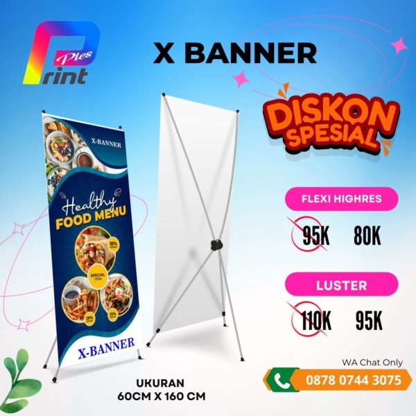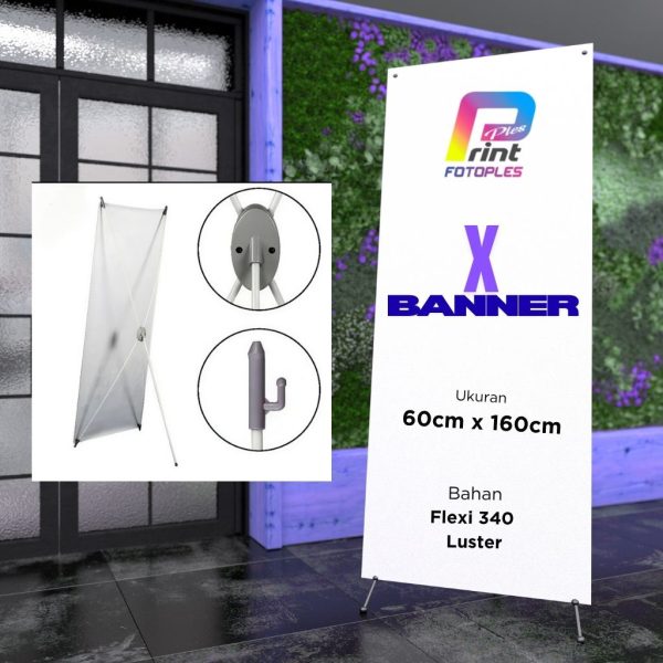 X Banner adalah media promosi yang digunakan untuk menyampaikan informasi, berbentuk banner dengan konstruksi penyangga berbentuk “X” agar banner bisa berdiri sendiri.